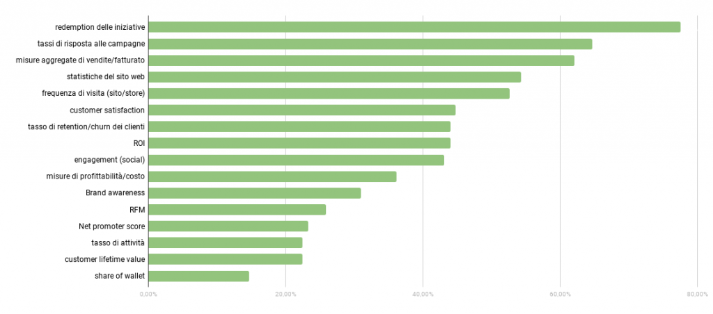 Solamente il 26,3% degli intervistati infatti afferma di aver reinvestito nel programma fedeltà una percentuale che va dall’1 all’1,5% del proprio fatturato e solamente questo 26% può quindi monitorare l’efficacia della strategia in termini di: